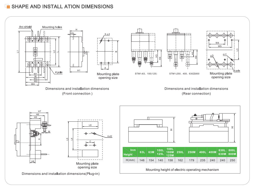 | Model | STM1-125 | STM1-250 | STM1-400 | STM1-630 | STM1-800 | STM1-1250 | |||||||||||||